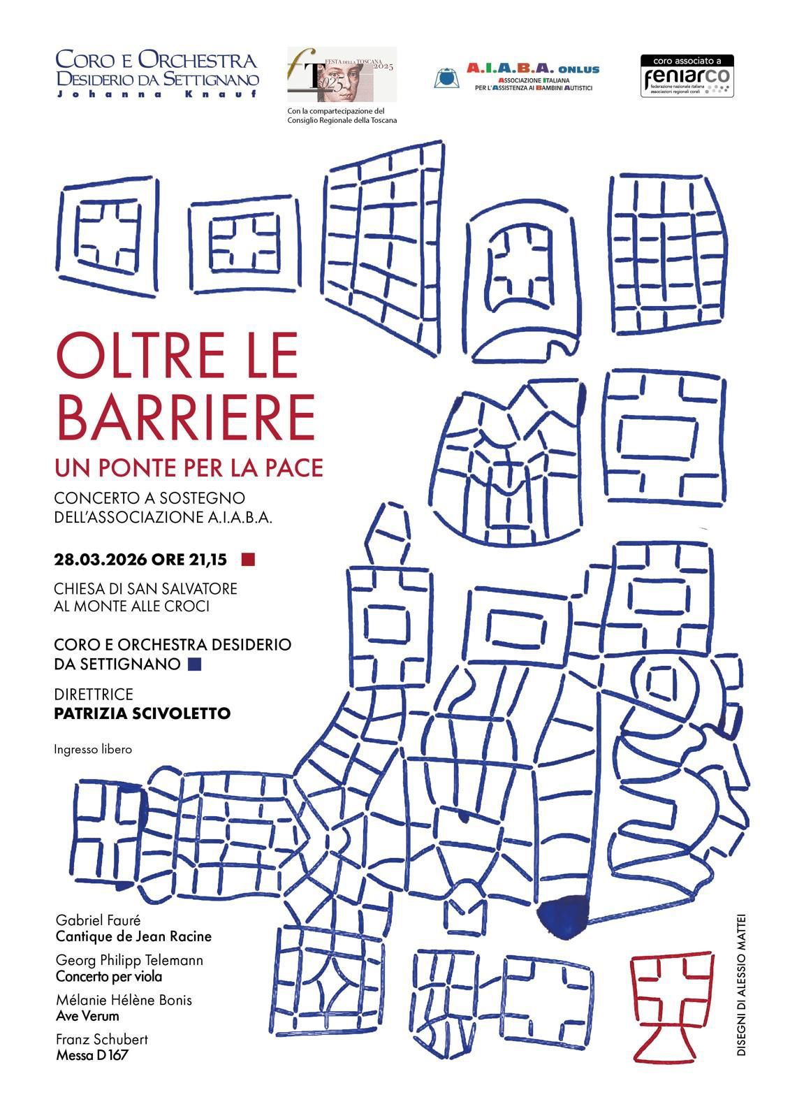 Il prossimo 28 marzo, la Chiesa di San Salvatore al Monte ospiterà un evento musicale speciale a sostegno delle attività della nostra associazione. Il concerto, intitolato “Oltre le barriere: un ponte per la pace”, vedrà protagonisti il Coro e l’Orchestra Desiderio da Settignano.